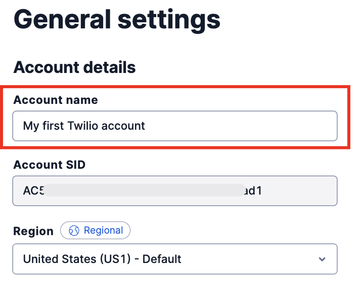 This helps us and Twilio better identify your account should you need help, without having to go into your account itself, which we prefer in order to respect the privacy and security of your account.Go to `Account` > `General settings` > `Account details` > `Account name.`