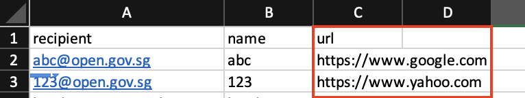 3\. In your CSV Recipient list, include a column with the header `url`. Fields under this column must begin with `https://`