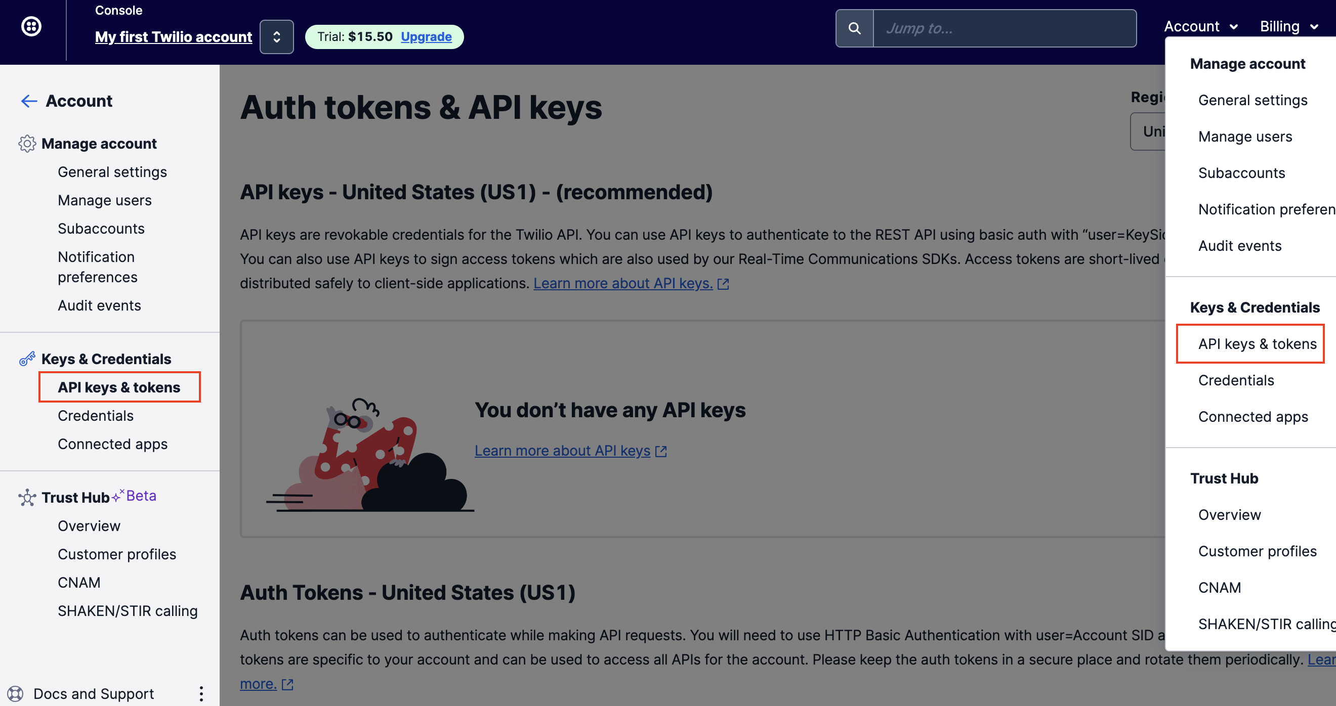 2. API key SID