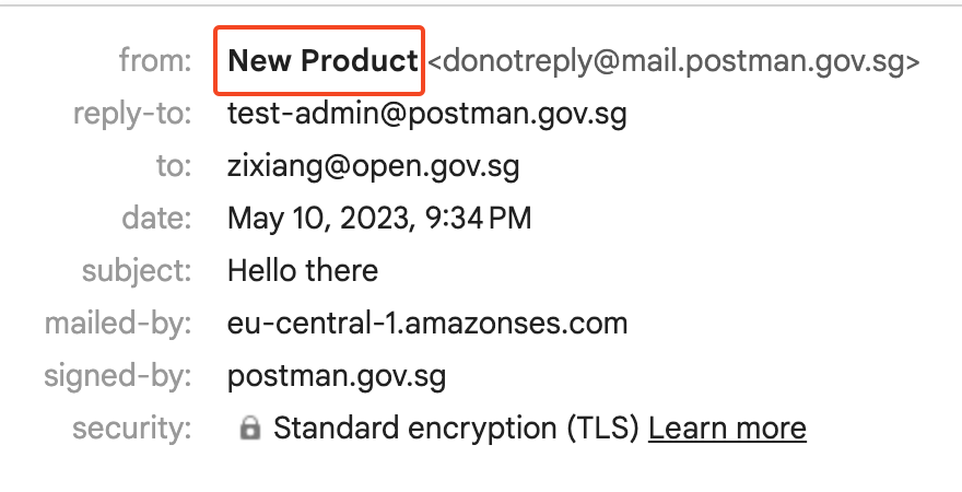 2. The from address defaults to `<donotreply@@mail.postman.gov.sg>`